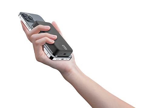 MAG 10000 er en bærbar batterilader som er kompatibel med MagSafe-teknologi. Festes til iPhone som er utstyrt med MagSafe uten behov for kabler.