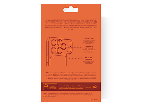 CamGuard gir robust og elegant beskyttelse til iPhone-kameraet ditt. Anodisert aluminium og dobbelt herdet glass med diamantlignende belegg beskytter effektivt mot riper uten å gå på bekostning av bildekvaliteten. Resultatet er skarpe, klare bilder og et design som matcher telefonen perfekt.KEY CAMGUARD gir robust og elegant beskyttelse til iPhone-kameraet ditt. Anodisert aluminium og dobbelt herdet glass med diamantlignende belegg beskytter effektivt mot riper uten å gå på bekostning av bildekvaliteten. Resultatet er skarpe, klare bilder og et design som matcher telefonen perfekt.